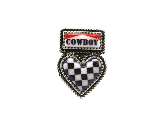 Western Checkered Heart Cowboy Cuff Ring