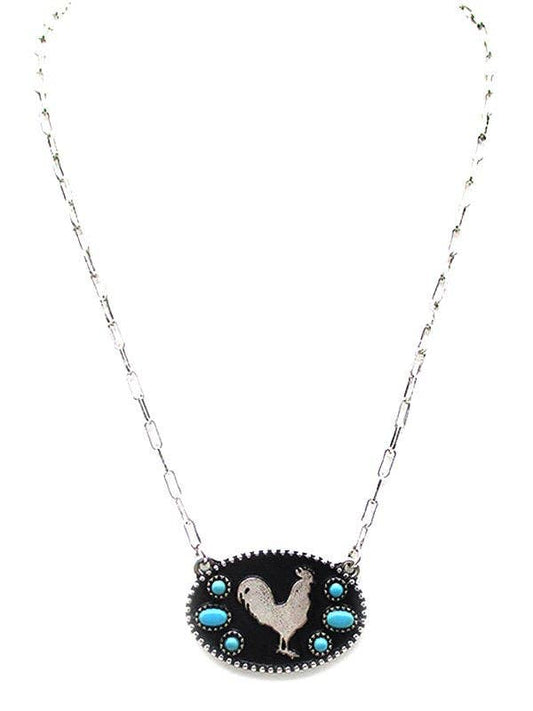 Western Rooster Silhouette Turquoise Stone Necklace
