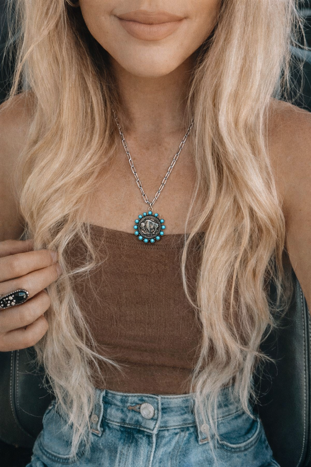 Western Buffalo Coin Turquoise Necklace